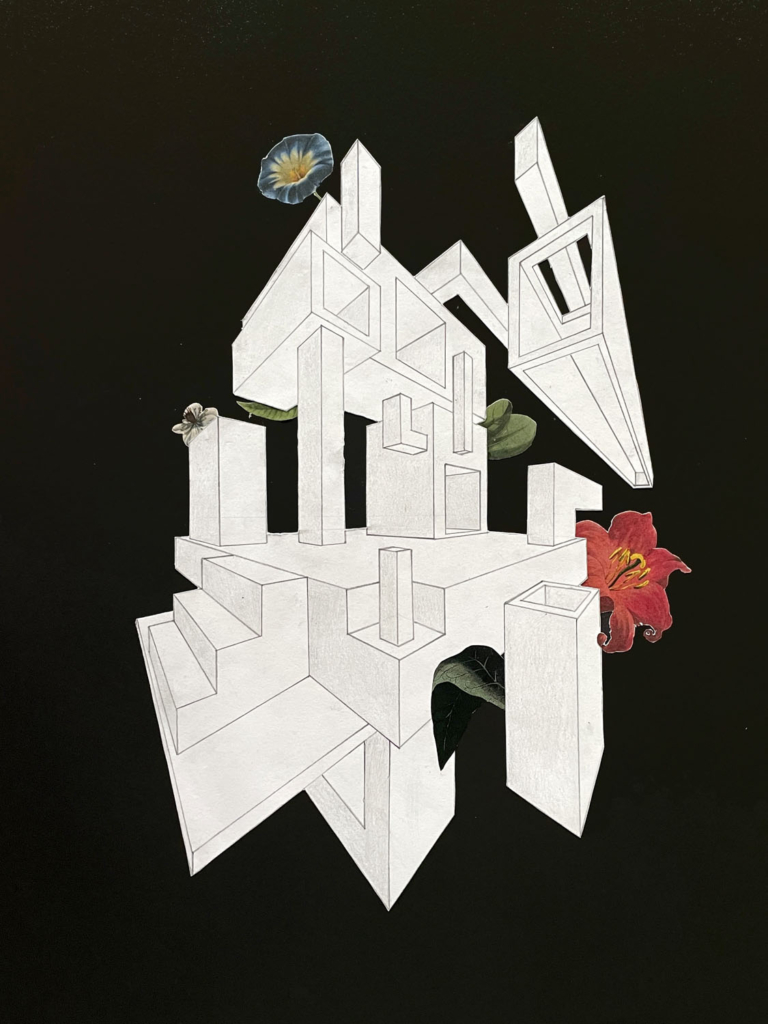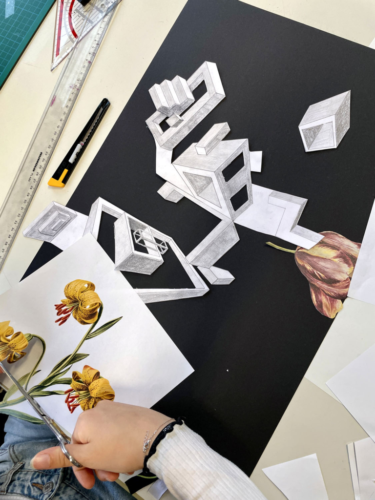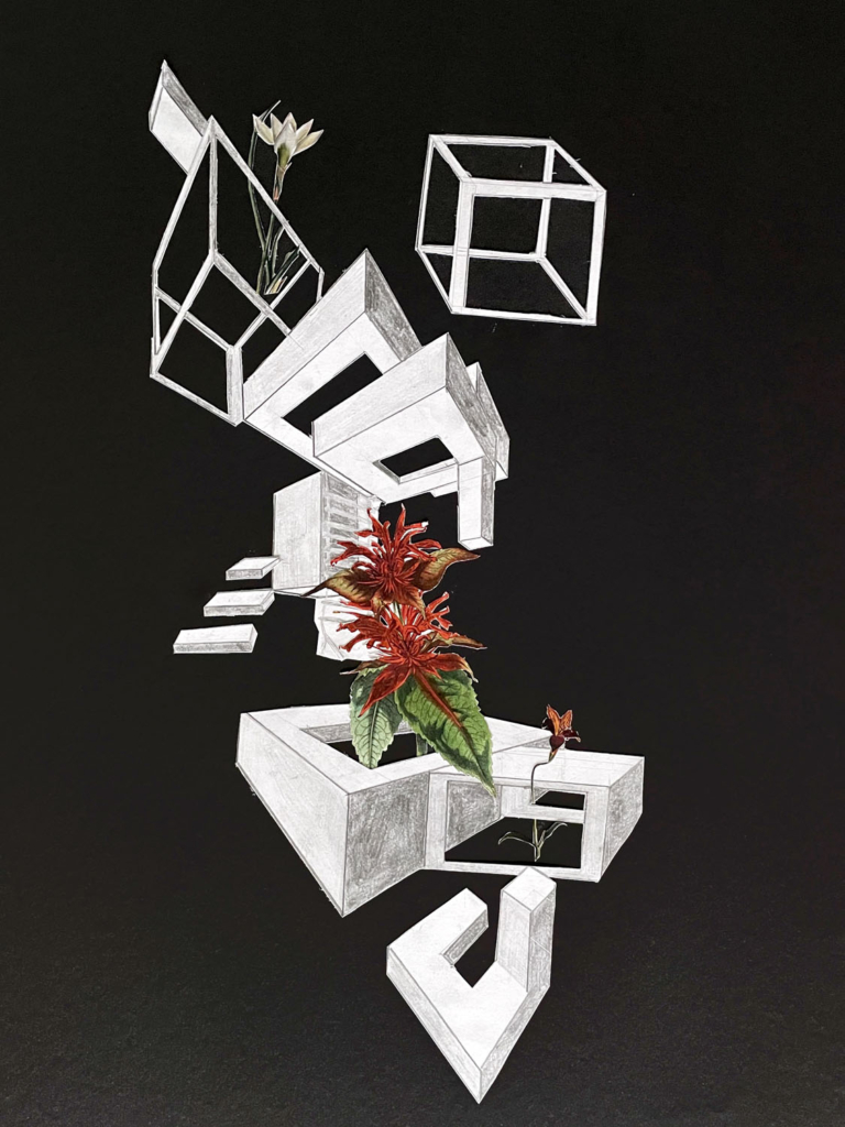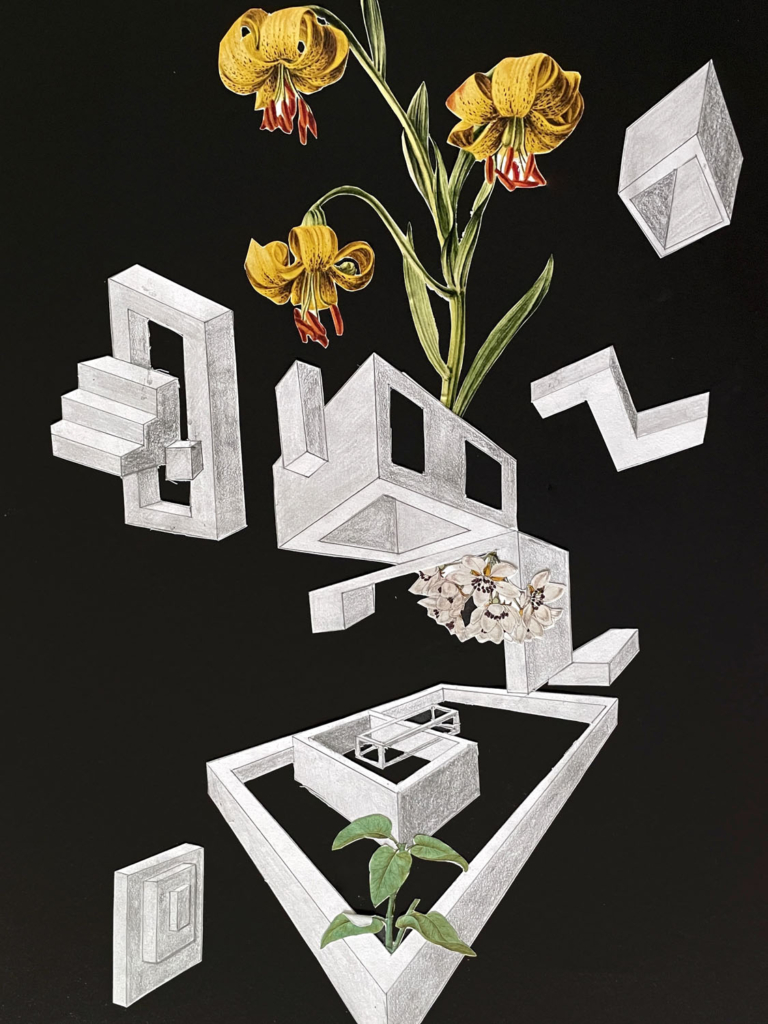 Architekturvisionen in Zweipunktperspektive treffen auf florale Invasion – Ein zeichnerisch-collagierendes Unterrichtsvorhaben