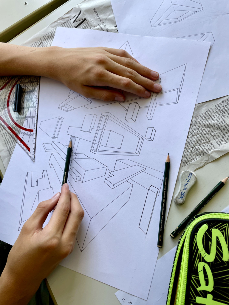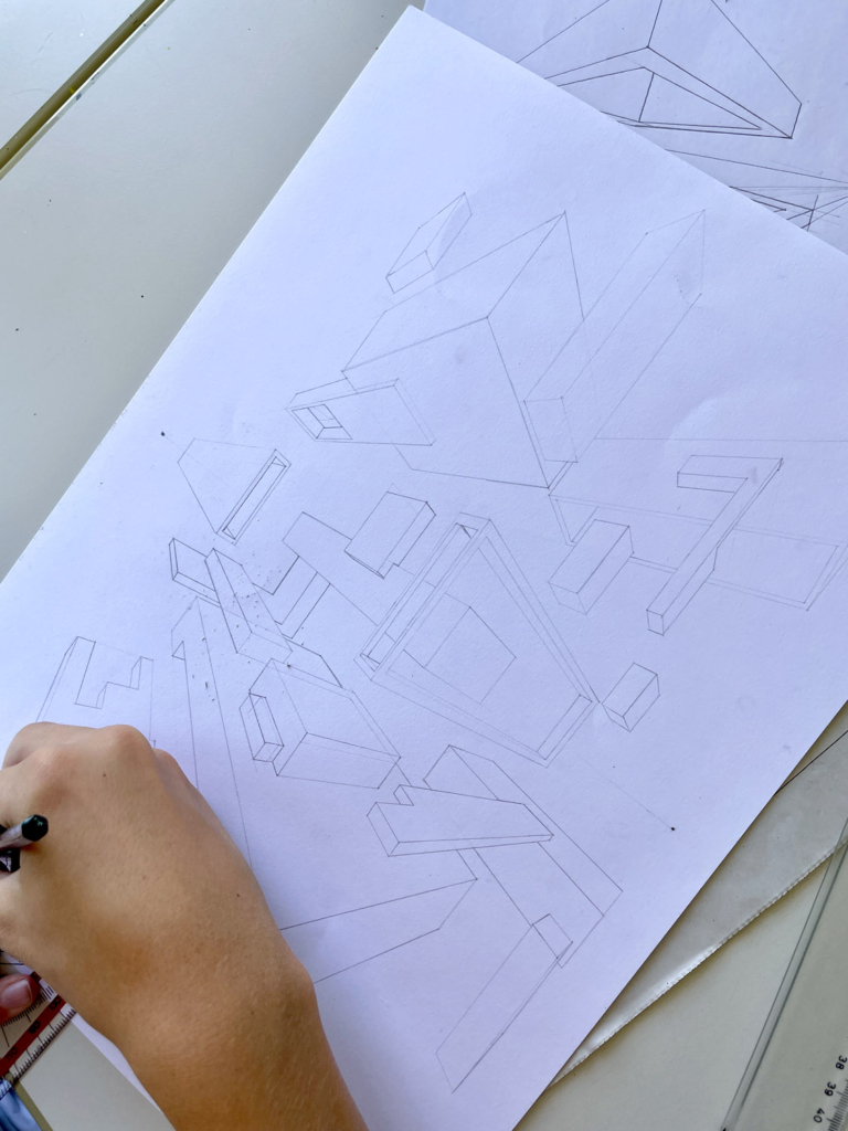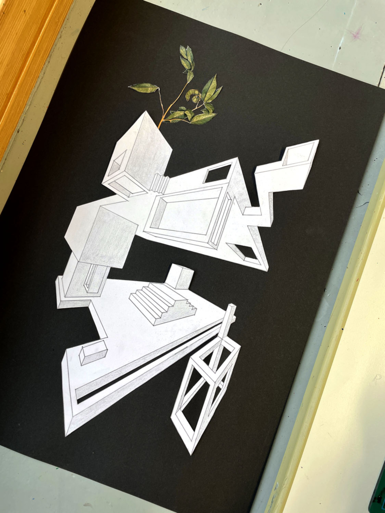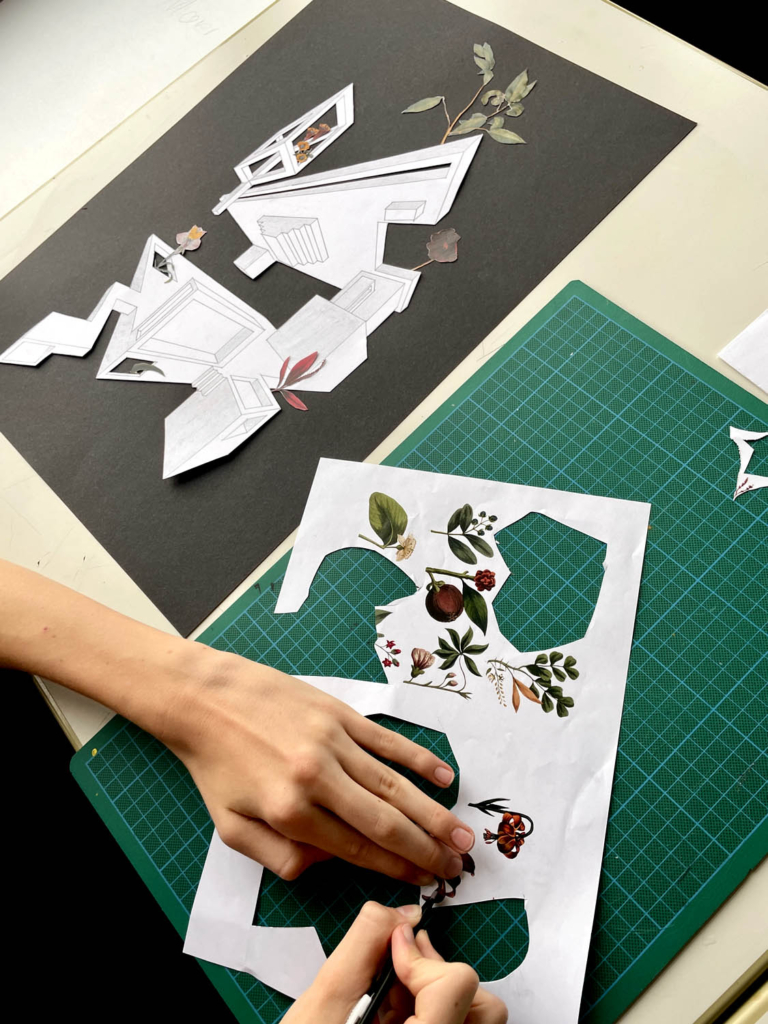 Architekturvisionen in Zweipunktperspektive treffen auf florale Invasion – Ein zeichnerisch-collagierendes Unterrichtsvorhaben