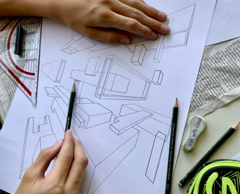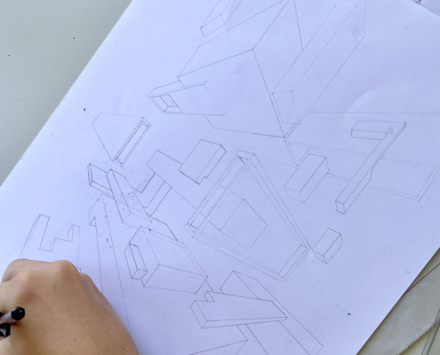 Architekturvisionen in Zweipunktperspektive treffen auf florale Invasion – Eine zeichnerisch-collagierende Unterrichtsidee
